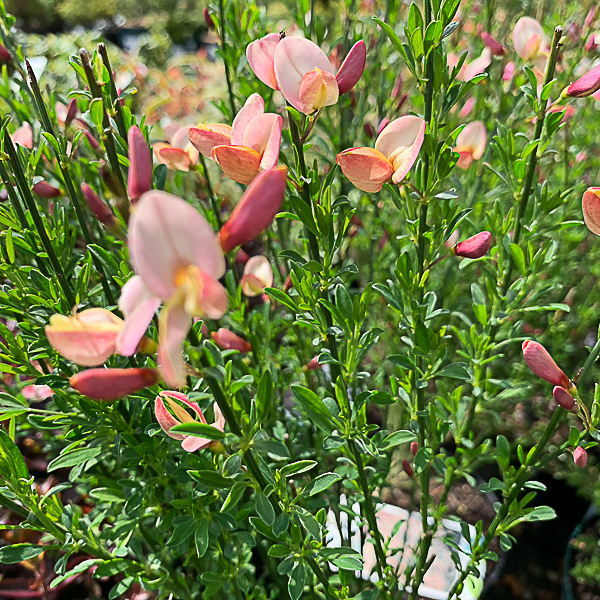 A very free flowering shrub of arching habit. Slender stems become heavily clothed in lilac/pink and cream pea-like flowers. Flws: May-Jun. Ht 5-6ft. Well drained soil in sun.
