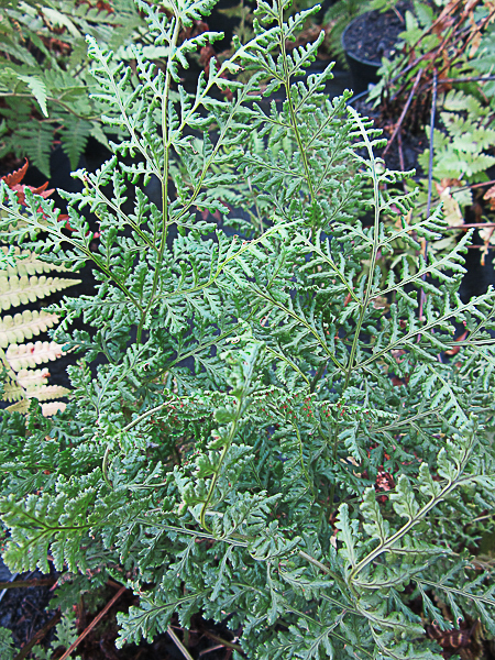 A decorative form. Evergreen. Mid green fronds with crisp, crinkled edge. Ht 12-18″. Thrives in a slightly acidic garden soil. Shade.
