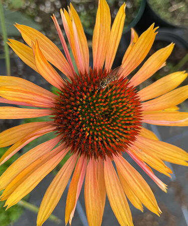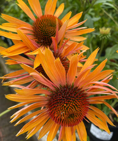Echinacea purp. ‘Big Kahuna’ is a coneflower with dark honey coloured petals around a red brown cone. Blooms June to September. Ht 50cm x spr 45cm. Prefers full sun. Well drained, dry, poor to moderately fertile soil – deep, humus-rich.
