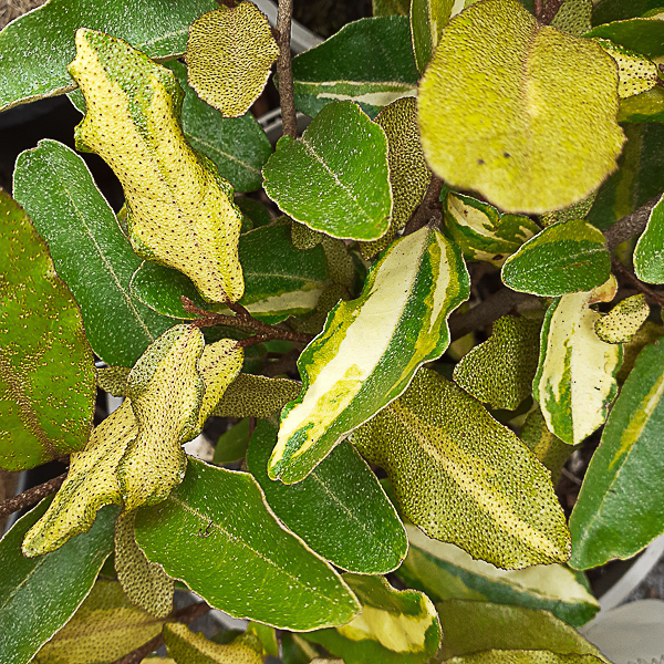 A striking, slow growing form. Narrow leaves mainly pale creamy-yellow, with a narrow bright green border. Fragrant flowers in autumn. Well drained fertile soil. Ht 5-6ft.