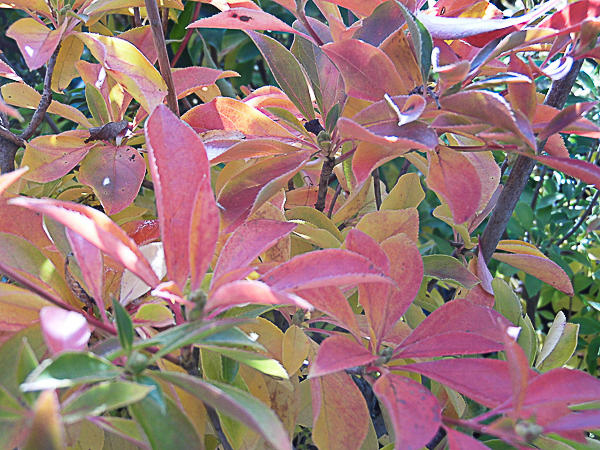 Deciduous, bushy, spreading shrub. Red shoots, tufts of dull green leaves. Spectacular autumn colouring, leaves in every shade between red and yellow. Small, bell shaped, blush ivory flws. Flws, May/Jun. Acidic soil. Ht 6ft, Sprd 5ft.