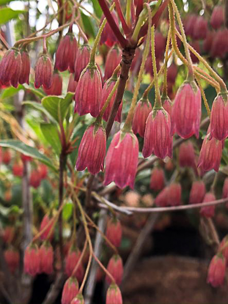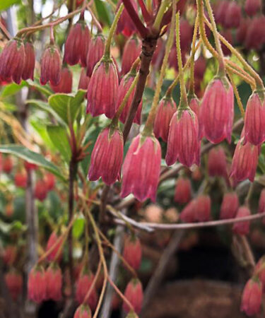 Deciduous, bushy, spreading shrub. Red shoots and tufts of dull green leaves that turn bright red in autumn. Small, bell shaped flws. Flws, May/Jun. Full sun and moist acidic soil. Ht 6ft, Sprd 5ft.