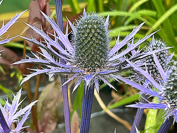 A lovely form of the ‘sea holly’. Flowers mature electric blue from deeply coloured violet-blue stems Jun-Sept, 60cm. Well drained soil, Sunny position.