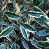 A small slow growing evergreen shrub. Dense compact form with small, narrow leaves. Green leaves splashed with white. Any soil. Sun or part shade.