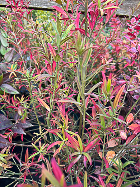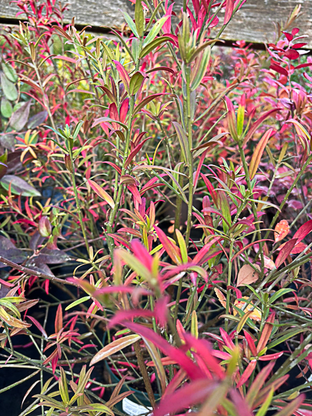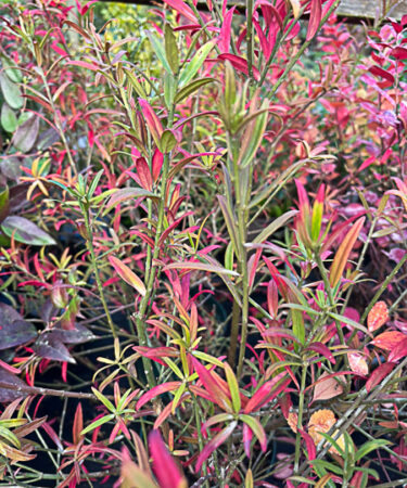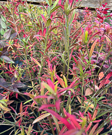 A semi-erect from upto 1 metre high. Long narrow leaves bronzing in winter. Bright pink fruits with orange seeds, autumn. Well drained soil. Sunny position.