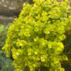 Evergreen ground covering rosettes. Open spires of flat lime-green flws. Flws: Jun-Jul. Thick, leathery leaves. Ht 18.” AGM. Sun or part shade. Moist, but well drained soil.