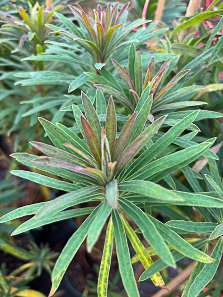 A sun loving shrubby plant upto ht 4ft. Huge cylindrical heads of golden flowers from late spring- summer. Purple tinged foliage. Reddish stems. Sun or part shade. Moist, but well drained soil.