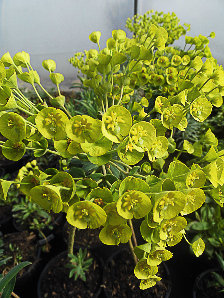 A compact selection with upright to outwardly spreading habit. Strong stems surrounded by blue-green leaves which remain evergreen. Huge clusters of yellow flowers contrast beautifully with the foliage during the Spring. Ht 24″. Well drained soil. Sun or part shade.