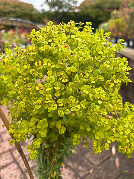 A clump-forming, semi-evergreen perennial with whorls of narrow, glaucous, blue-green leaves on branched stems and yellow-green flowers in late summer and early autumn. Ht 20″ (50cm). Well drained soil. Sunny position.
