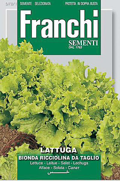 Bionda Ricciolina: Very early, this cutting lettuce produces beautiful soft lime-green leaves, held up by a crunchy rib at the back. The leaves are ruffled. Cut and come again variety. Cut as much as you need.
