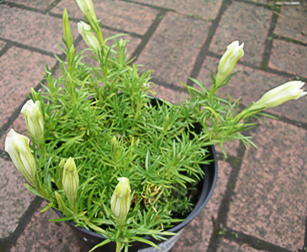 Evergreen, prostrate, spreading perennial producing from Aug-Oct, large, white trumpet-like flws. Ht 4″. Moist, peaty soil.