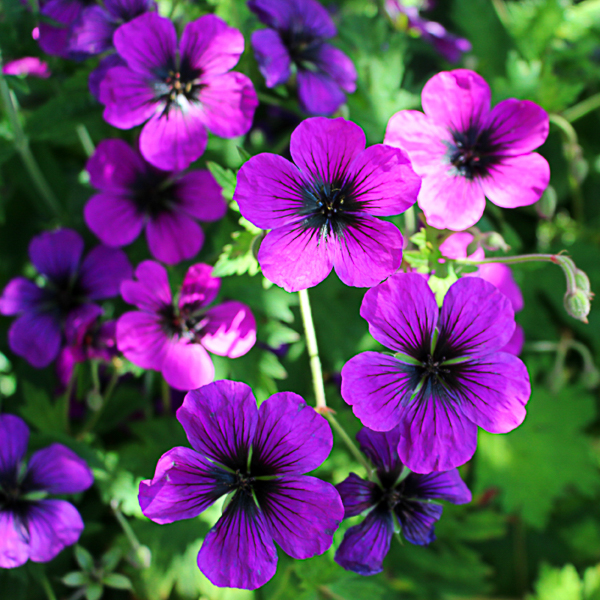 Hardy Geranium. Foliage is in lovely shades of green. Flws are magenta with a black center and are produced for most of the summer. H x Sp 24″. Full sun or part shade. Moist well drained soil.