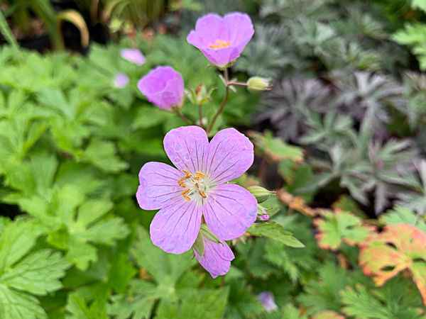 A pretty plant with sprays of soft lilac pink flowers, lightly cupped are carried on short stems above a mound of deeply divided, mid-green leaves. Flws: late spring-mid summer. Ht 45cm. Well drained soil, sun or part shade.