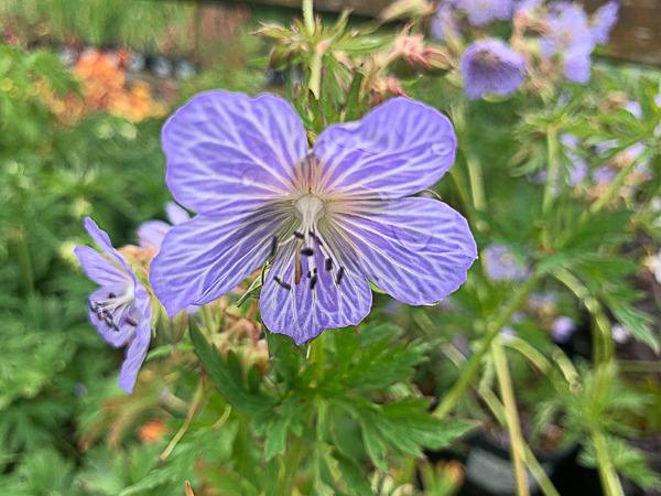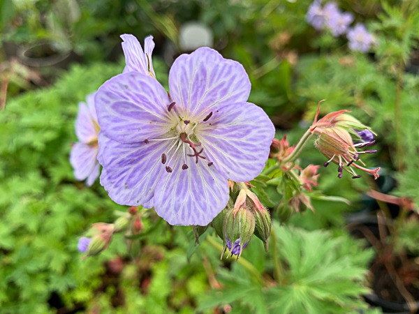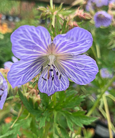 Clusters of delicate light lavender blue/grey flws, with prominent white veining. Divided foliage. Flws: Jun-Jul. Ht 3ft. AGM. Sun/ shade. Well drained soil.