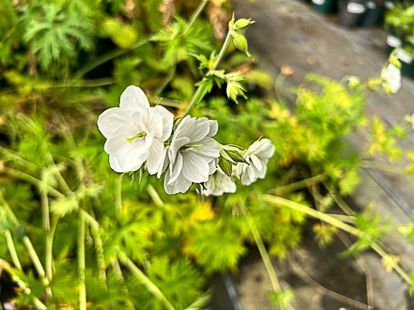 A recent new introduction. Fully double pure white flowers are borne profusely from mid Jun until end July. Stronger habit than pratense ‘plenum album’. Found as a seedling by Cheshire gardener Christine Morley and named in honour of her mother. Any reasonable soil. Sun/ part shade.