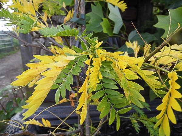 Deciduous, spreading tree. Fern like glossy foliage that is golden yellow when young, deep green in Summer. AGM. Sun, well drained soil. Ht 15-18ft.