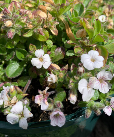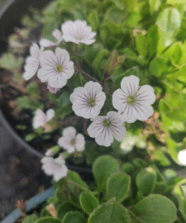 Also known as Acanthophyllum. A very pretty, choice gypsophylla with cushion forming soft grey green foliage and masses of white veined purple flws May-Jun. Ht 2″. Well drained soil, sun.