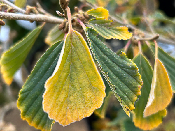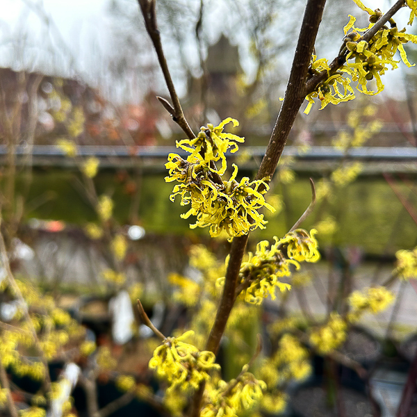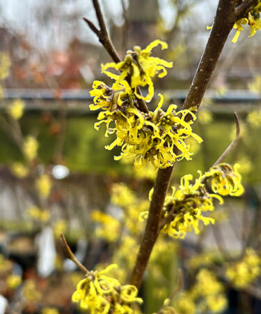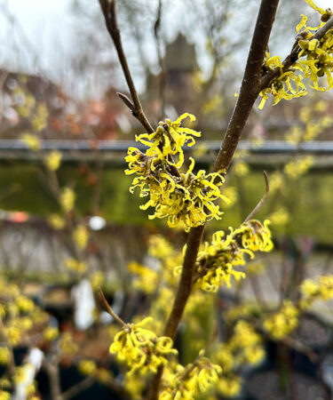 Hamamelis japonica ‘Zuccariniana A distinct variety flowering late in the season. Lime yellow flowers with crimped petals. Leaves turn yellow in autumn. Ht 2.5m. Acid to neutral soil. Part shade.