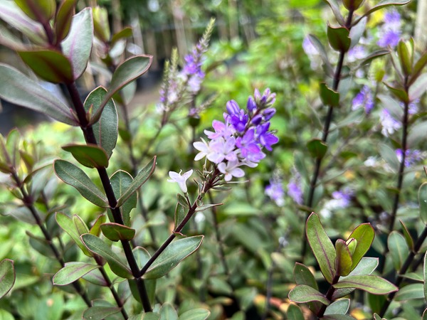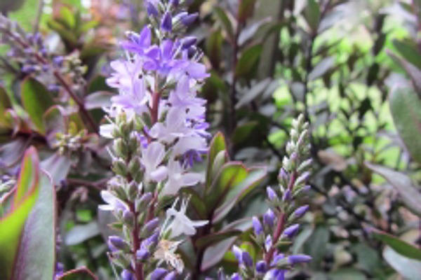 A sensational small evergreen shrub with all year interest. Deep burgundy foliage in the winter months, which turns a rich green with splashes of red in summer. Produces lilac flowers with white tints in Jun-Aug. Ht 60x60cm. Best in a sunny well drained position, keep sheltered from cold winds and prolong frosts.