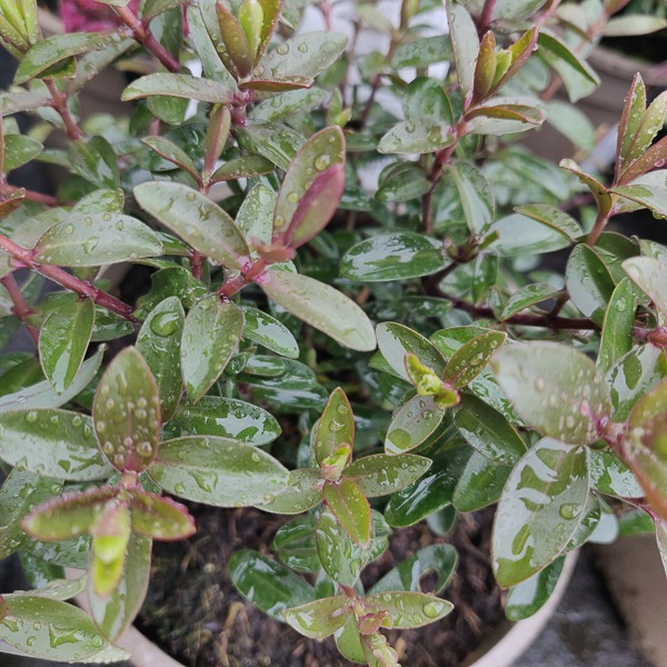Excellent dwarf evergreen hebe with a profusion of pink flowers from June right through until the first frosts.Ht 35cms spread 35cms. Well drained soil.