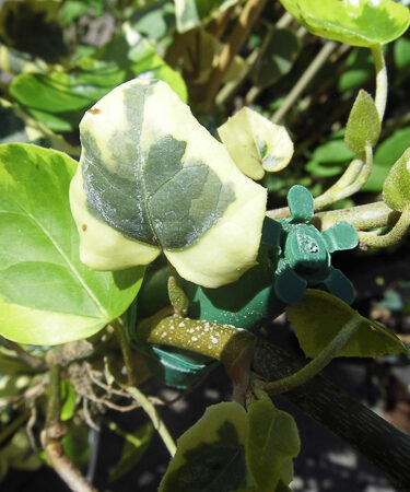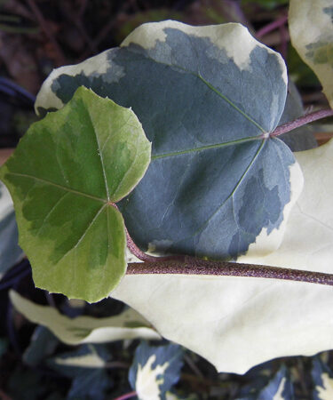 A rapid climber. Large glossy, soft green leaves with spectacular creamy-yellow variegation. An excellent wall plant. AGM. Fertile, well drained soil. Sun/ part shade.