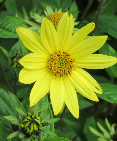 Clumps of erect leafy stems, ovate light grey green foliage. Large lemon daisy like flowers. Flws: Jun-Sept. Ht 4-5ft. AGM. Any well drained, light, loose neutral to alkaline soil. Sun.