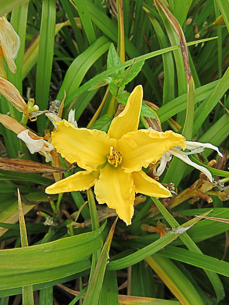 A very striking form. 5″ ruffled double golden yellow flws with a green throat. Thick textured petals. Flws: Jun-Jul. Ht 60cm. Any reasonable soil. Sunny position.