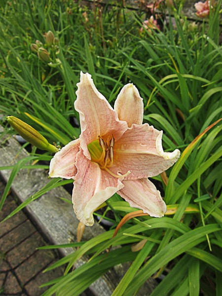 Clumps of fresh green, narrow foliage. Peach trumpet flws with a faint lavender overlay. Flws: Jul-Aug. Ht 80cm. Any reasonable soil, full sun.