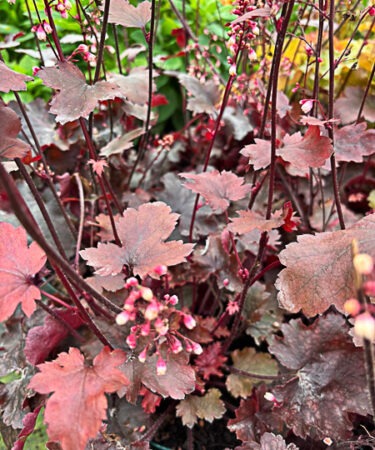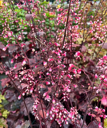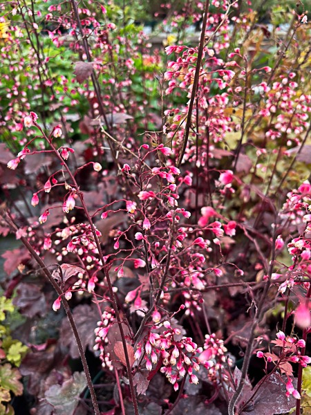 Glowing wine red foliage, forming an attractive medium sized mound topped by bi-coloured white/pink flws on dark red stems. Flws continuously through spring, summer and autumn. Ht 22cm x spr 40cm. Ideal for mixed border or container.