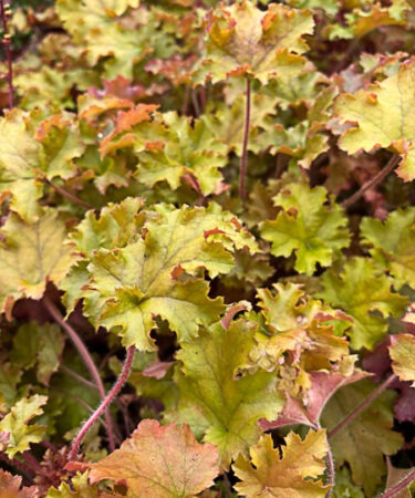 clump-forming, semi-evergreen to evergreen perennial. Golden yellow foliage with a light silver sheen. Slender dark pink stems bear panicles of bell-shaped yellow flowers from early summer into early autumn. Ht 50cm. Full sun / partial shade and moist, well drained soil.