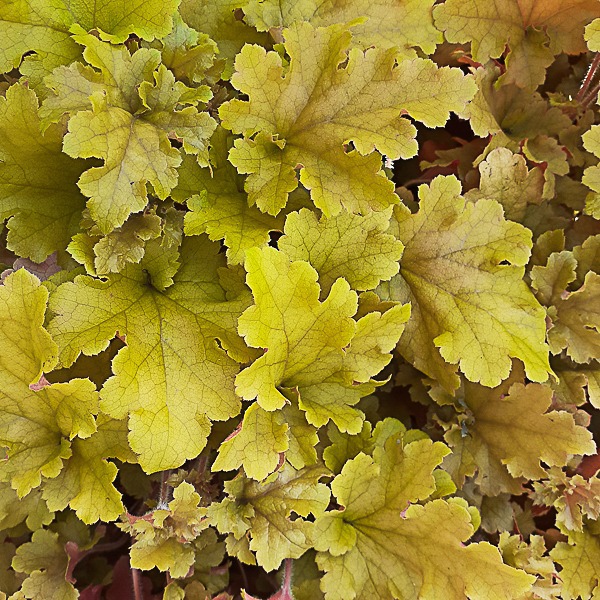 An attractive foliage plant. Rich, shiny, undulating leaves in a range of colours from amber to peachy bronze with hot pink undersides. Sprays of brownish flws, late spring. The evergreen foliage is perfect edging a border, along a path or even in pots on the patio. Ht 45cm (18″). Moist but well drained soil. Sun or part shade.