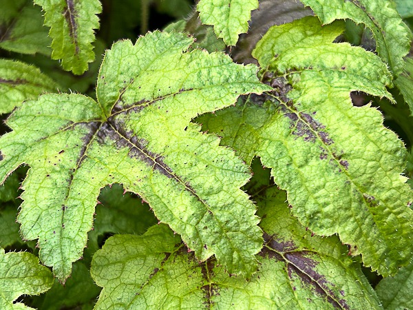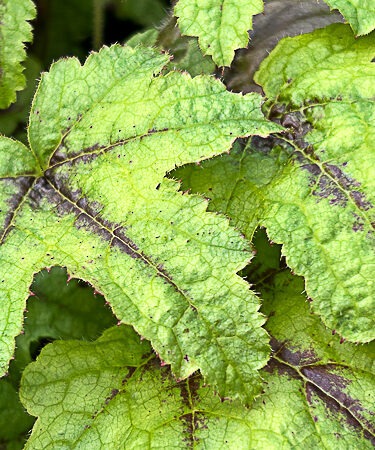 The foliage could certainly be mistaken for Tiarella being so narrow and painted in spring, becoming more palmate in summer. The best aspect of this variety is its metallic rose flws in spring. Ht 20cm x 30cm. AGM. Moist, fertile humus-rich soil, preferably neutral. Sun/ semi-shade.