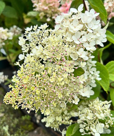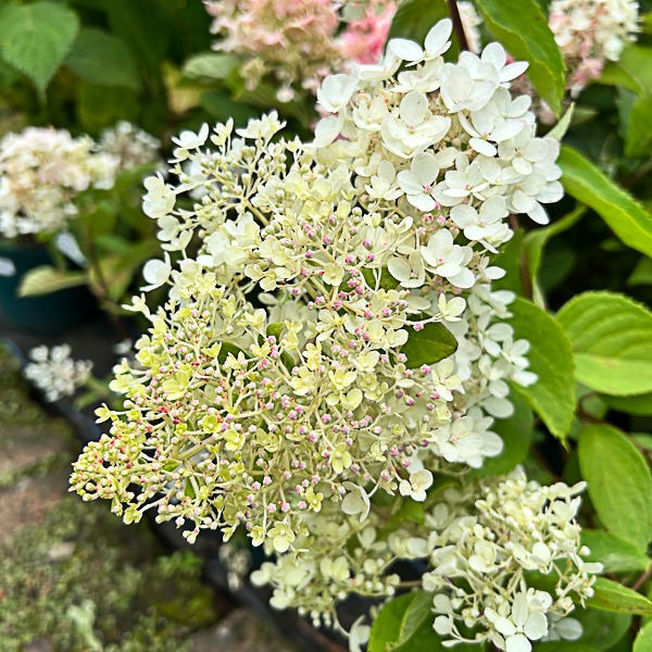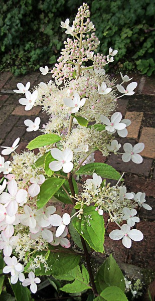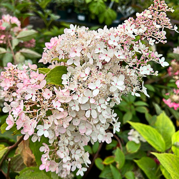 A spectacular species hydrangea. Large panicles white fading pink flws. Flws: Aug-Sept. Ht 8ft. AGM. Requires annual mulch decayed manure. Annual pruning of side shoots produces larger flower heads.
