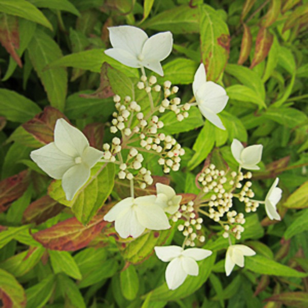 An elegant Japanese selection with extremely narrow bamboo-like foliage along stems to 3ft (90cm). Beautiful white lacecaps nestled within.