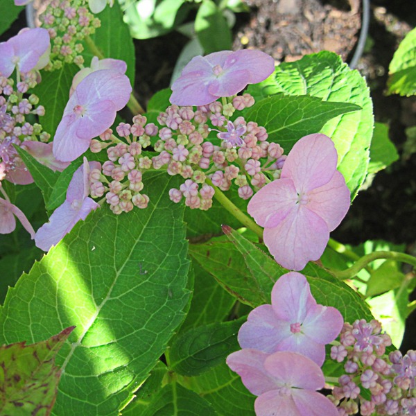 A lovely small lacecap hydrangea. Dwarf habit, rarely exceeding 3ft. Flat deep blue lacecap flowers if planted in acid soil or pink if planted in alkaline. Flws: Jul-Aug. AGM. Fertile soil, sun or part shade.