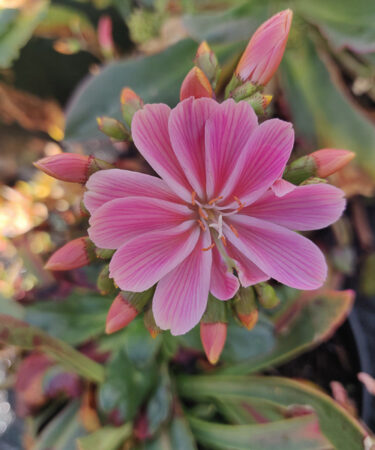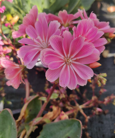 Rosettes of rich green succulent foliage, large fringed flowers in colour range lemon/yellow/apricot/burnt orange/deep pink. May- Jul. Ht 4″. Well drained position. Wall or trough.