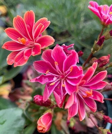 Rosettes of rich green succulent foliage, large fringed flowers in colour range lemon/yellow/apricot/burnt orange/deep pink. May- Jul. Ht 4″. Well drained position. Wall or trough.