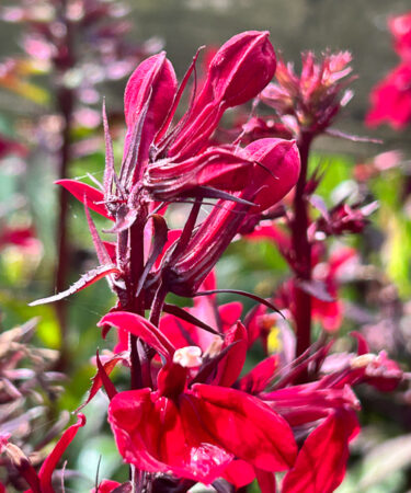 Glossy green rosettes. Showy spires of burgundy butterfly flws. Flws: Jun-Aug. Ht 2-3ft. A striking plant for a damp site. Any fertile, moist garden soil. Open, sunny to semi-shaded site.