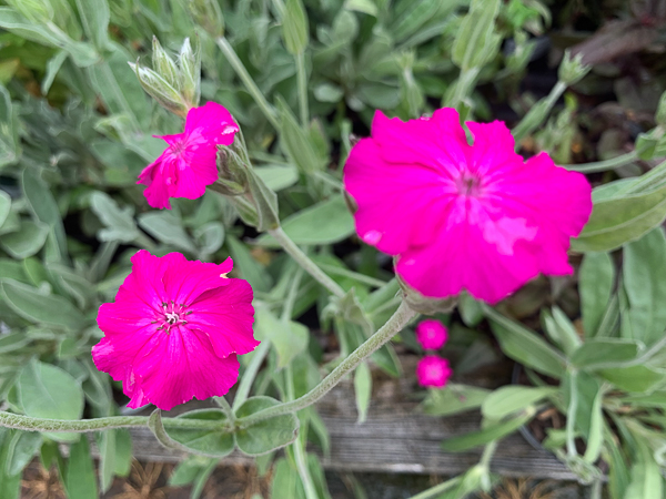 A sterile hybrid between Lychnis flos-jovis and L.coronaria. A long-blooming plant May-Oct, strong pink-red flowers, grey foliage. Ht 75cm. Dry, poor soil.