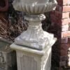 Large column in antiqued marble with decorative capital of Ionic order.