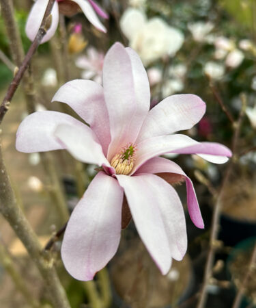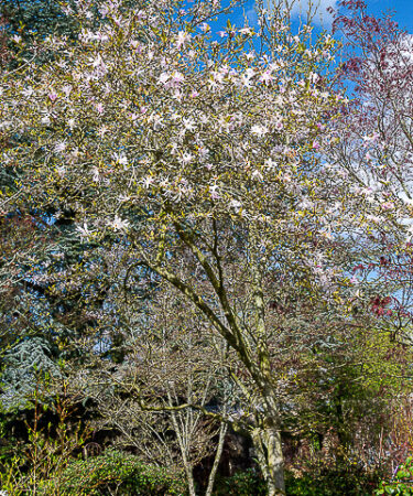 A tall elegant shrub. Large oval deep green foliage. Star shaped, lilac -pink flowers. Fragrant. Flws: April/May. Ht 10-12ft. Fully hardy. Fertile, well drained soil. Sun/part shade.