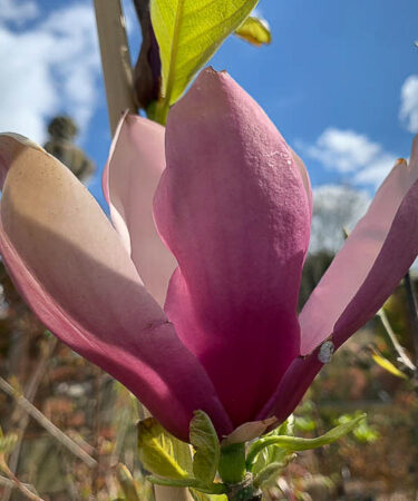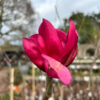 A deciduous shrub with compact habit. Beautiful cup shaped, scented flowers appear in Spring, wine purple petals outside, white within. Flws: Mar-April. Ht 3m. Acid to neutral soil. Sun or part shade. Protect from cold winds.