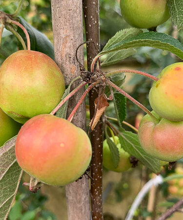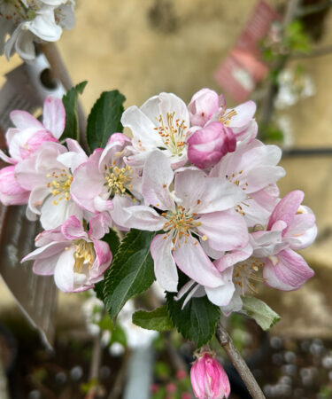 Yellow-orange crab apples are ribbed in appearance looking like mini pumpkins. Perfect for the Halloween season! Spring flowers are white and semi-double, perfect for attracting pollinating insects. This crab apple acts as natural bird feeder in the autumn. Crab Apples are self-fertile, and very useful as pollinators for a variety of fruit trees. Full sun or part shade, best grown in fertile, moist, deep, loamy soils. Ht and Sprd (after 10 years): 4m x 3m