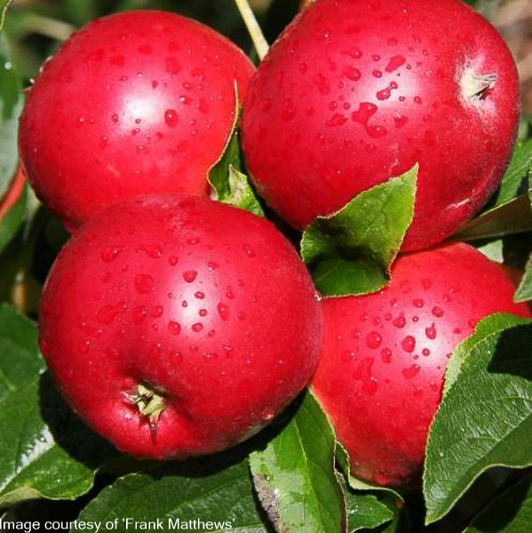 An excellent new apple. Grown here on very dwarf rootstock, reaching ht 2m/ 6ft in 10 years. Self fertile, also good pollinator. Disease resistant. Thin skinned- good for children and can be eaten straight from the tree during September. Suitable for patio. Suitable for all areas of the UK. Unique flavour- try it for yourself. Rootstock M27. Very dwarf.
