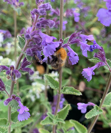 An unusual form with lemon-scented foliage that keeps away mosquitos and cats. Good purple-blue flowers, May-Aug. Ht 30-40cm. Well drained soil. Sunny position.