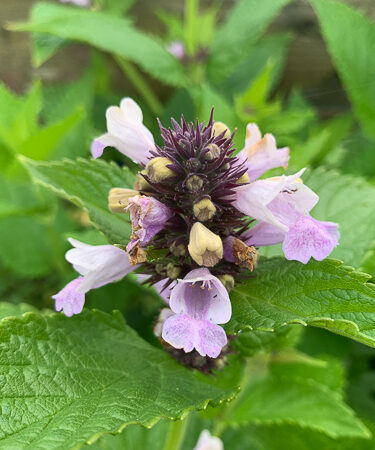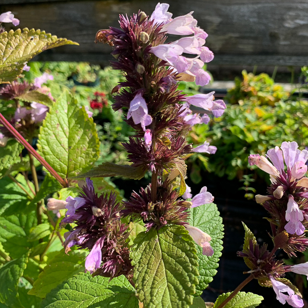 Attractive Japanese plant. Larger than usual speckled pink flared trumpets on stubby spikes. Sweetly fragrant foliage. Ht 15″. Well drained soil. Sun.