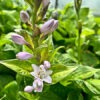 Large double,orchid to shell pink flowers with dark rose/reddish stamens on strong stems. Flws: June. Ht 80cm.