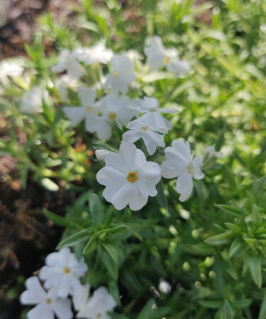 A dense, mat-forming, evergreen perennial with linear, dark green leaves and masses of white flowers in late spring and early summer. Ht 15cm x spr 45cm. Well drained soil, sunny position.