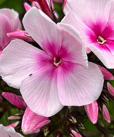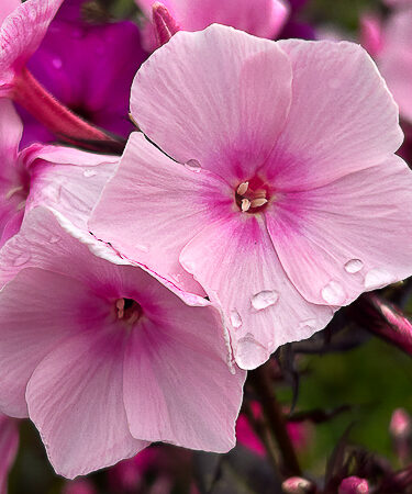 A lovely compact variety. Heads of pink flws with red eye. Flws: Jul-Sept. Ht 80cm. Full sun and moist, well drained soil.