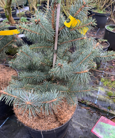 A lovely blue spruce with a number of good attributes. Wide pyramidal form growing 30cm per year. Excellent specimen plant. Acid soil. Sunny position.
